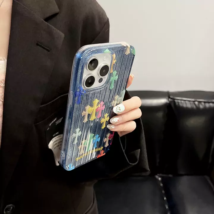 chrome hearts アイホン 15プロカバー 韓国レザー ブランド アイフォーン15plusカバー ストライプ柄